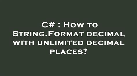 C# Decimal String Format. It also displays the string representations of. Web the following example displays a decimal value using the default tostring () method.