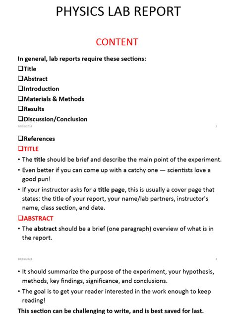 Format For Physics Lab Report. Web a sample lab report for this activity is provided as an example for you to follow when writing future lab reports.