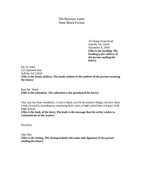 Sample Semi Block Letter Examples Semi Block Style Business Letters